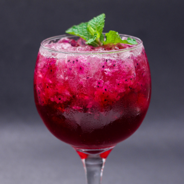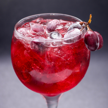 Gin, uva, xarope de maracujá, red bull tropical, alecrim.