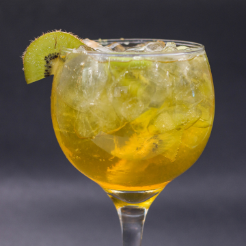 Kiwi, gin, xarope de kiwi, red bull de coco.
