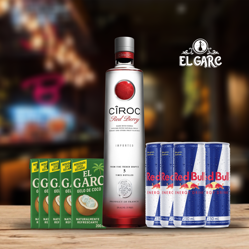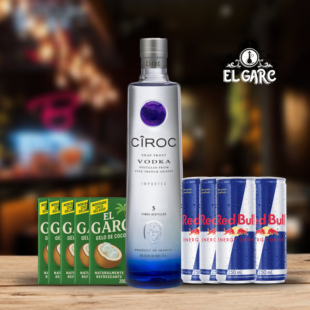 Acompanha gelo de coco e red bull.